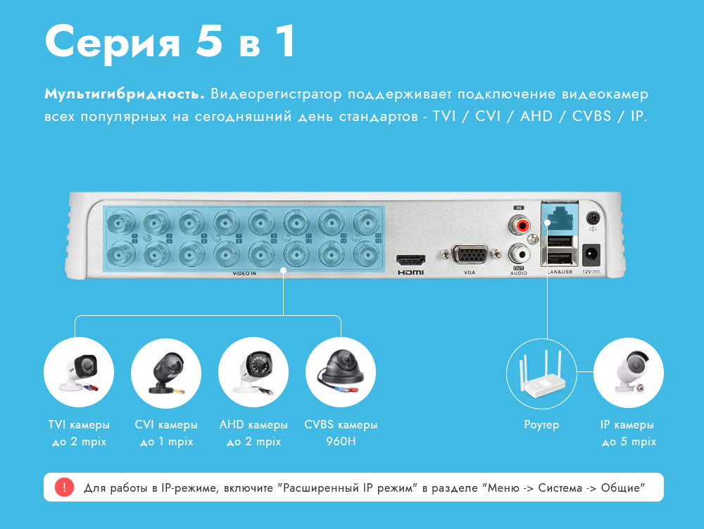 Серия 5 в 1 - Поддержка TVI, CVI, AHD, CVBS и IP видеокамер