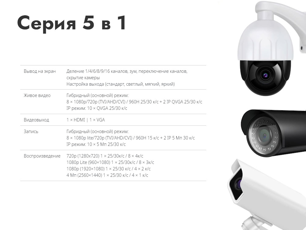 Серия 5 в 1 - Поддержка TVI, CVI, AHD, CVBS и IP видеокамер