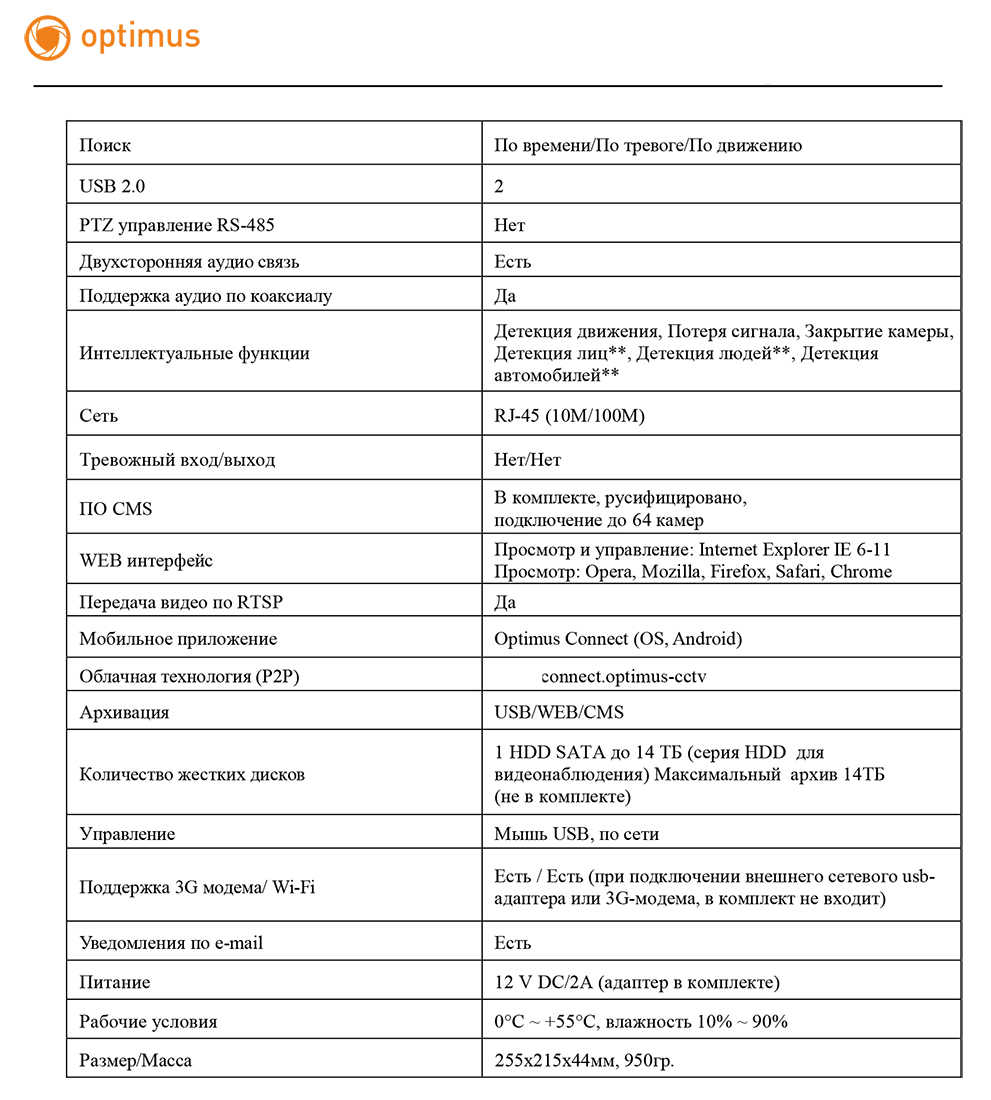Видеорегистраторы поддерживают функцию облачного сервиса Optimus Connect, которая позволяет, при наличии интернет соединения, получить доступ к просмотру видеоизображения из любой точки мира с помощью компьютера, планшета или смартфона.