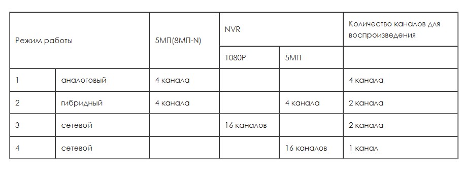Расшифровка *: * В данном режиме будут работать только камеры, в которых есть режимы 5МП 12,5к\с и 4МП 15к\с, если данных режимов нет, то камера будет отображаться в 5M-N и 4M-N соответственно. **Если данную функцию поддерживает камера