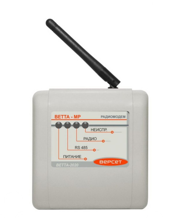 ВЕТТА-МР беспроводное приемо-передающее устройство Версет; центральная частота радиоканала 868,95 МГц; полоса радиоканала 0,5 МГц; рабочий диапазон напряжения питания 10...15 В; импеданс антенного входа 50 Ом; -30...+50 °С; 207х105х40 мм; не более 0,2 кг.