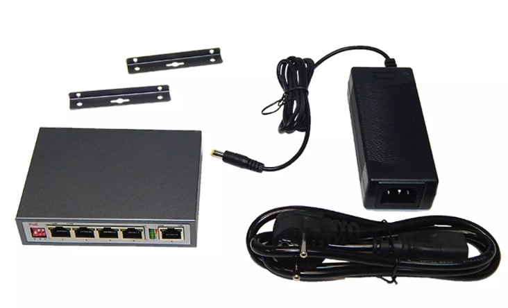 Коммутатор сетевой, неуправляемый. 4 порта POE (IEEE802.3af/at), 1 LAN-порт без поддержки PoE (1xUplink 10/100 Base). До 30Вт на порт, суммарное PoE питание до 65Вт. Исполнение в металлическом корпусе, IP20. Питание от сети 220В, DC 48…57В, блок питания DC 52В/1.25A в комплекте, 70Вт, -20...+55°C, 118х95х28 мм. Прибор предназначен для использования в системе «Тромбон IP» в качестве сетевого PoE коммутатора.