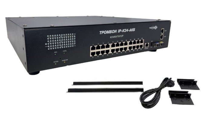 IP-К24-АКБ сетевой коммутатор Тромбон; -20…+60 °С; 437х425х88 мм; 10 кг.