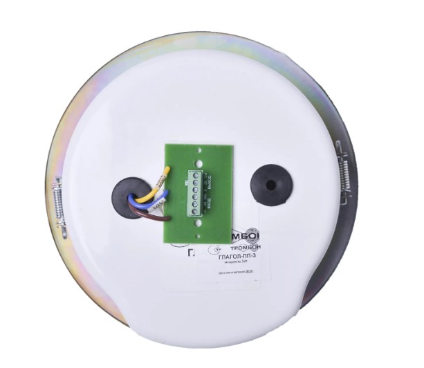 Глагол ПП-3 оповещатель речевой потолочный Тромбон; IP41; металл; мощность 3 Вт; номин. напряжение 30/100 В; звуковое давление 89 dB; 1 динамик; диапазон частот 100-15000 Гц; 0...+40°C; 200х100 мм; 0,82 кг.