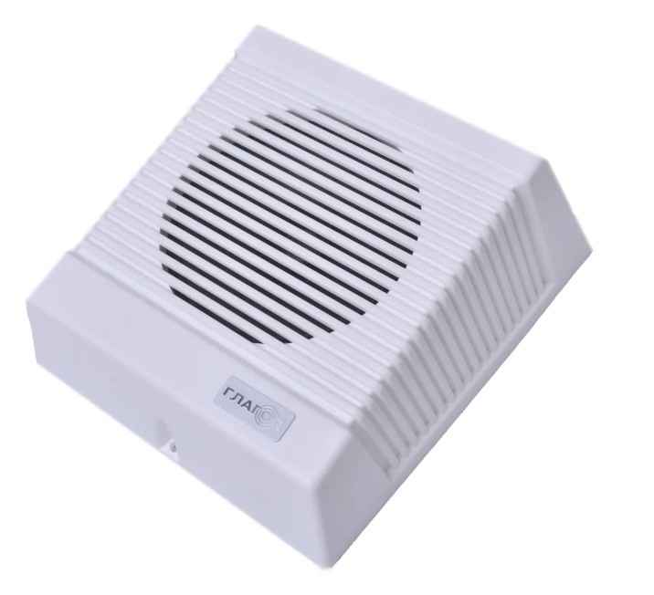 Оповещатель речевой активный Глагол Н1-3А предназначен для воспроизведения голосовых сообщений, поступающих с аудиовыхода IP-камер в системе видеонаблюдения Возглас и аналогичных систем. Громкоговоритель имеет встроенный активный усилитель мощности с регулировкой уровня громкости. Номинальное входное напряжение на звук. вход – 0,775 В, номинальная выходная мощность 3Вт, напряжение питания 12 - 15В.