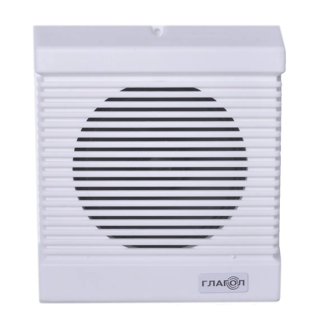 Глагол Н1-3А оповещатель речевой настенный активный Тромбон; пластик; IP40; 1 динамик; 90-16000 Гц; 94 dB; мощность 3 Вт; номин. напряжение 12-15 В; 0...+40°C; 0,8 кг.