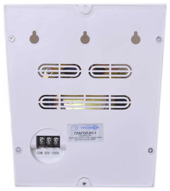 Глагол Н1-1 оповещатель речевой; настенный; навесной; 1 Вт; номинальное напряжение 30/100В; 93 дБ; 90Гц-16кГц; пластик; IP40; 193х175х85 мм; 0,68 кг.