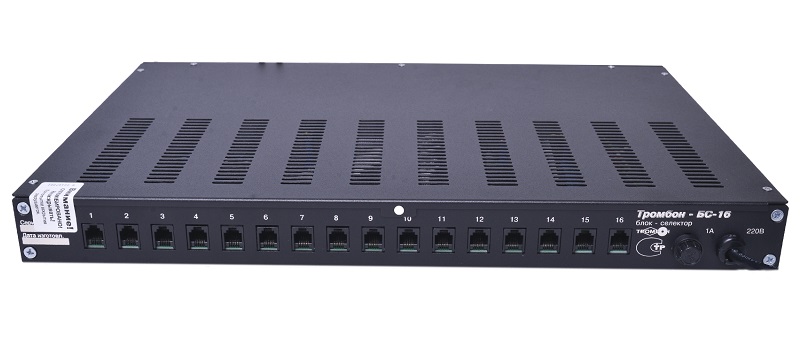 Тромбон БС-16 блок-селектор; по 2 панели, двухсторонняя связь; 4-х проводная линия; питание 220В; встроенный блок резервного питания 12В; длина линии (4-х жильная) связи c одной вызывной панелью до 400м; 438 х 285 х 44 мм / 1U; 4,3 кг.