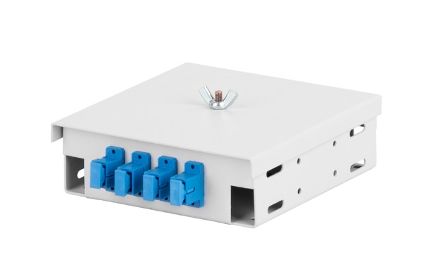Оптические кроссы предназначены для коммутации оптических волокон, в частности для создания разъемного соединения между оптическими шнурами, подключенными к активному оборудованию и оконцованным оптоволоконным кабелем. Оптические кабели заводятся в кросс и оконцовываются нужными коннекторами путем сварки с пигтейлами. Для защиты соединений и укладки запасов длин волокон применяются штатные ложементы и термоусаживаемые гильзы. Соединение оконцованного кабеля с коммутационными шнурами происходит через оптические проходные адаптеры, устанавливающиеся в вырубленные посадочные места на нижней панелей кросса. Оптические кроссы NMF-WP04SCUS2-OP-ES-GY предназначен для монтажа на стену. Корпус кросса выполнен из стали и надежно защищает волокна от внешних механических воздействий и попадания внутрь посторонних предметов. Кросс снабжен съемной крышкой которая фиксируется на посадочной шпильке при помощи гайки. В каждый кросс на специальной площадке установлен ложемент, а для ввода кабеля предусмотрены 4 кабельных ввода. Простая конструкция позволяет осуществлять удобный и быстрый монтаж оптических сетей.