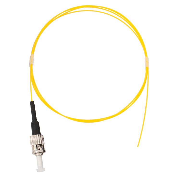 Оптические монтажные шнуры (пиг-тейлы) служат для оконцевания оптоволоконных кабелей разъемами посредствам приваривания к ним готового отрезка кабеля заранее оконцованного коннектором в заводских уловиях. Такие шнуры изготавливаются из кабелей диаметром 0,9 мм и, соответственно, имеют разъем лишь с одной стороны. Монтажные шнуры могут быть как одномодовыми (желтая оболочка), так и многомодовыми (оранжевая оболочка). Монтажные шнуры могут быть и неразрезанными, оконцованными с обеих сторон. От обычных соединительных шнуров их отличает меньший диаметр наружной оболочки и, следовательно, большая гибкость (но и большая хрупкость). Неразрезанные шнуры позволяют при необходимости измерить оптические характеристики перед монтажом. После измерений шнур разрезается пополам, тем самым образуя два стандартных монтажных шнура.
