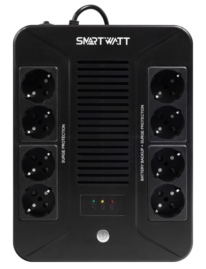 Встроенный стабилизатор защищает от перепадов напряжения в электросети. Компактные размеры, LED-индикация и возможность размещения на стене делают источники бесперебойного питания SMARTWATT UPS SAFE PRO одним из самых удобных решений для офисного пространства.