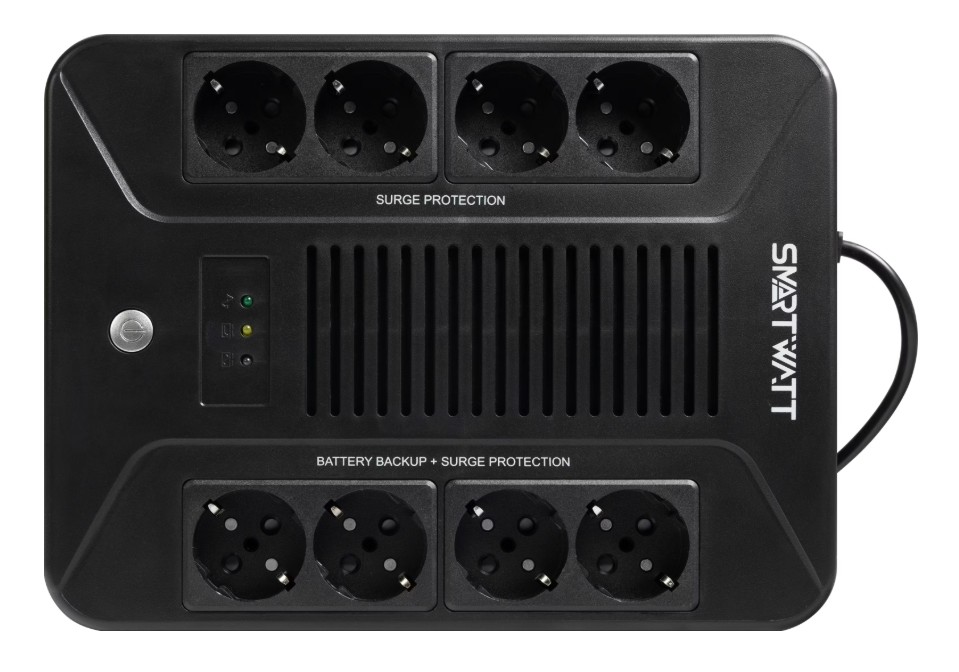Линейно-интерактивные ИБП SMARTWATT UPS SAFE PRO для офисного и мультимедийного оборудования позволяет резервировать до 4 устройств одновременно.