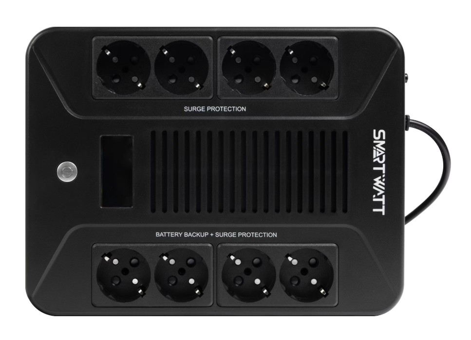 Источники бесперебойного питания SMARTWATT UPS SAFE PRO LCD имеют 8 евророзеток (4 с функцией резервирования) и понятную LED-индикацию. При необходимости ИБП можно разместить на стене для экономии пространства и удобства пользователя.