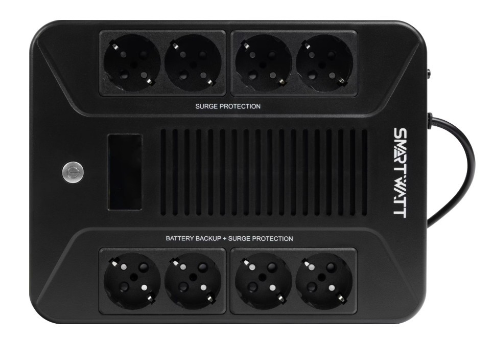 Источники бесперебойного питания SMARTWATT UPS SAFE PRO LCD имеют 8 евророзеток (4 с функцией резервирования) и понятную LED-индикацию. При необходимости ИБП можно разместить на стене для экономии пространства и удобства пользователя.