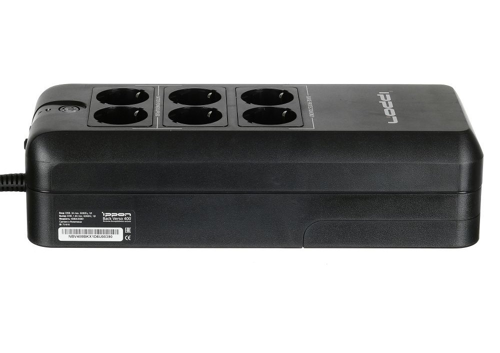 ИБП IPPON Back Verso рекомендованы как для офисного, так и для домашнего использования и позволяют подключать до шести (!) устройств одновременно: 4 евро-розетки обладают батарейной поддержкой и ещё 2 дополнительные розетки ограничены функционалом сетевого фильтра. Также предусмотрены специальные гнезда для защиты телефонной линии.