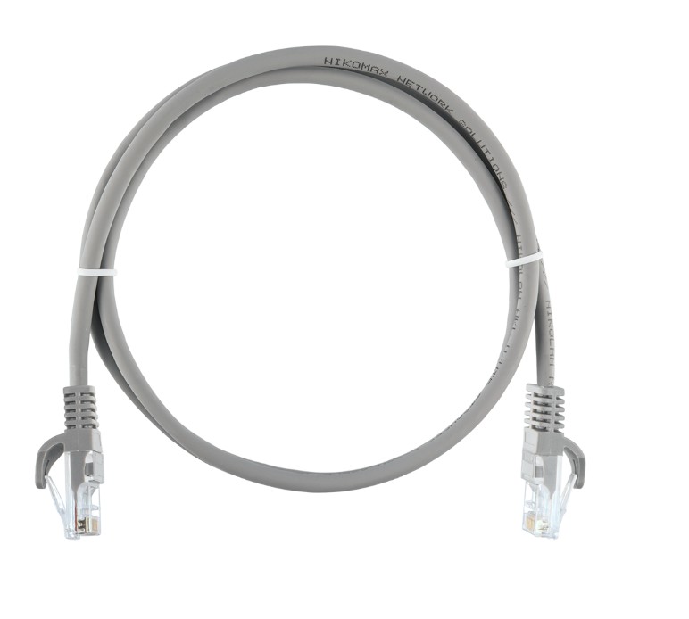 NMC-PC4UD55B-ES-003-C-GY шнур Essential Line NIKOMAX; U/UTP 4 пары; Кат.5e; RJ45/8P8C; T568B; 25AWG; HF; серый; внешний диаметр оболочки 4,9 ± 0,3 мм; хранение от -20 до +60 °C; эксплуатация от -20 до +50 °C; 0,3м.