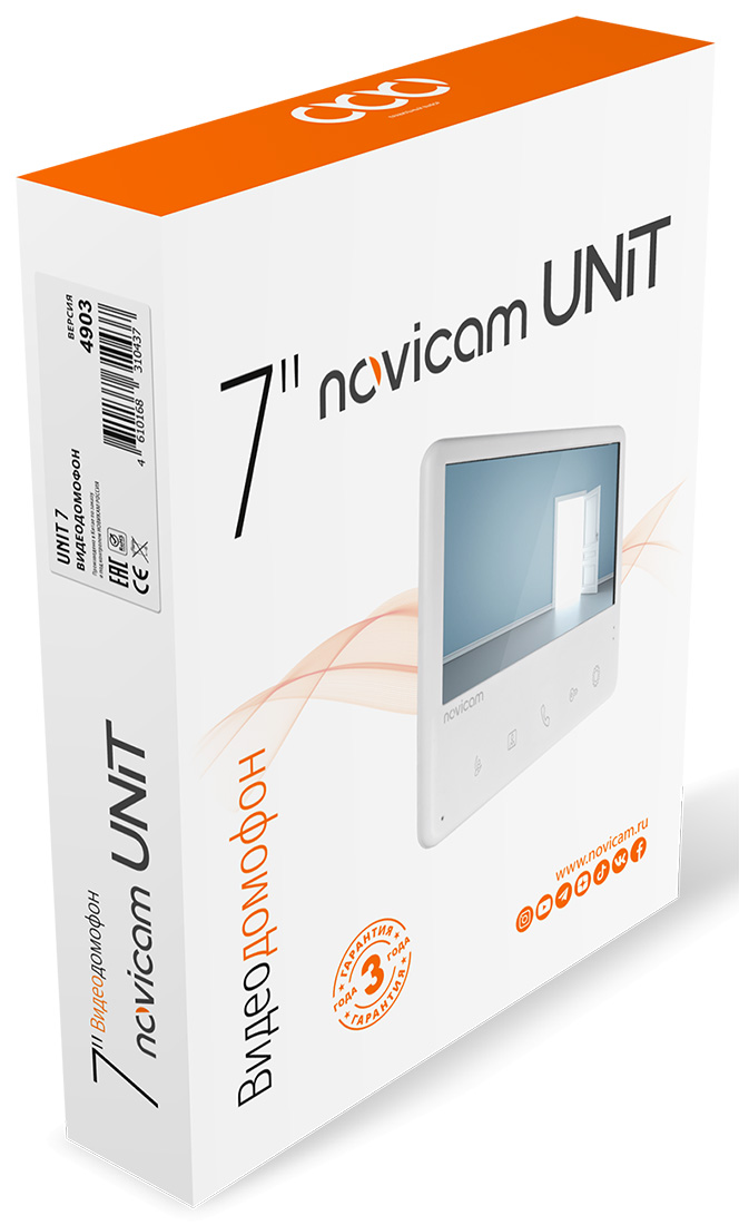 UNIT 7С (ver.4902) видедомофон Novicam; TN-TFT дисплей 7"; 800x480; сенсорные кнопки; поддержка видеокамер 1; поддержка: 2 вызывных панелей; реле Н.Р./Н.З.; HOOK; функция "Не беспокоить"; AC 100-240В; материал пластик; цвет корпуса белый; 10°...+50°С; 175х150х19 мм.