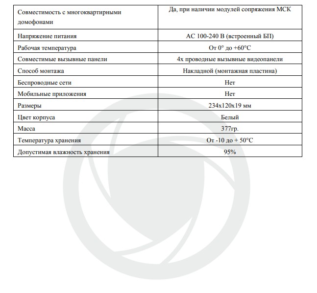 Совместимость с многоквартирными домофонами: Да, при наличии модулей сопряжения МСК
