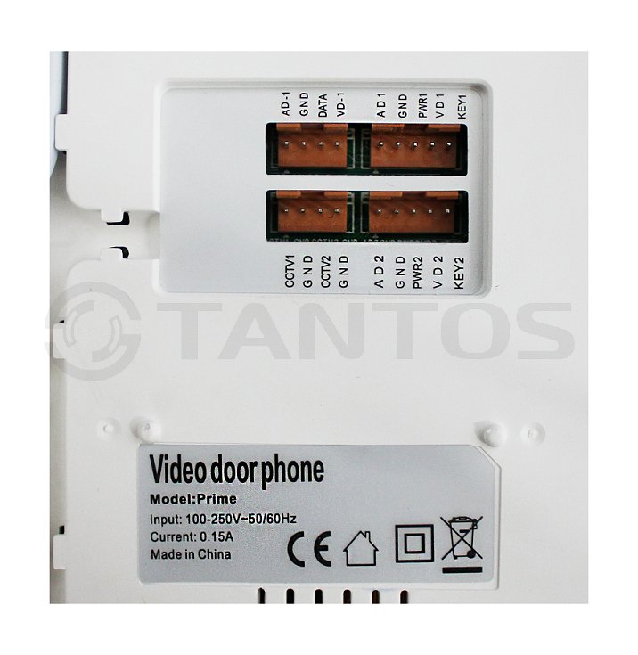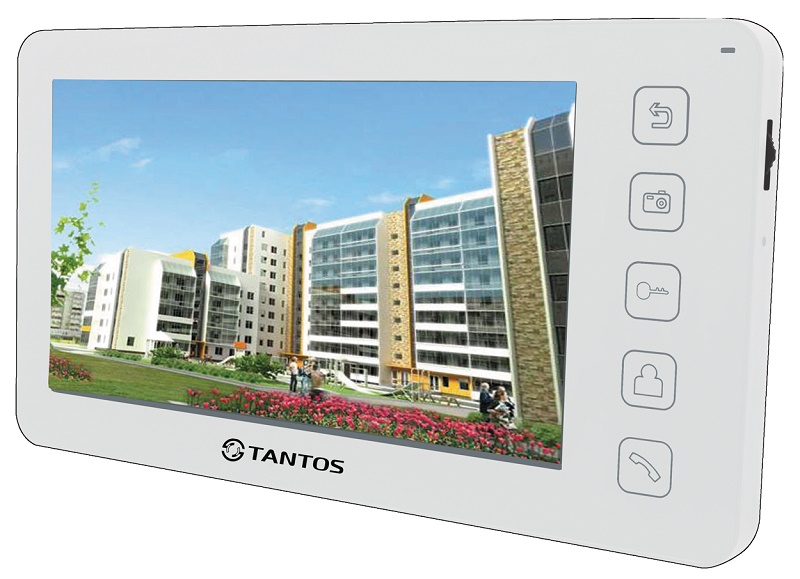 PRIME (white) монитор видеодомофона Tantos; TFT 7", 800x480; handsfree; сенсорные кнопки; 2 панели, 2 камеры, до 4-х шт. в параллель; голосовая почта, фоторамка, встроенный видеорегистратор (детектор движения на 1 канал); поддержка интеркома; поддержка micro SD до 32ГБ SDHC класс не ниже 6-го; режим <Не беспокоить>; 0 +40 С°; белый; 210 х116 х25 мм; 470 г.