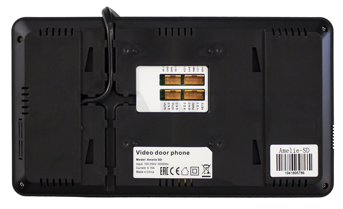 Amelie (Black) VZ (Vizit) монитор видеодомофона; дисплей TFT, цветной, 7", 800x480; сенсорные кнопки; 1 панель, 1 вход от подъездного домофона, 2 камеры; без трубки; чистый звук; режим <не беспокоить>; цв. черный; 0 +40 С°; 210х116х25 мм; 450 г.