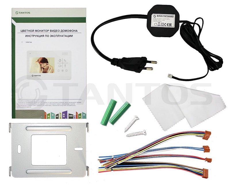 LILU lux видеодомофон Tantos; передняя панель выполнена по технологии IML (In Mold Labelling); экран 4,3 дюйма; сенсорные кнопки; TFT LCD 4,3" 480x272; PAL/NTSC; Hands-Free; 2 панели; до 4-х шт. мониторов в параллель; 25 мелодий; питание 14,5В; адаптер 220В/14; 5В в комплекте; 180х112 х17мм; 260 г.