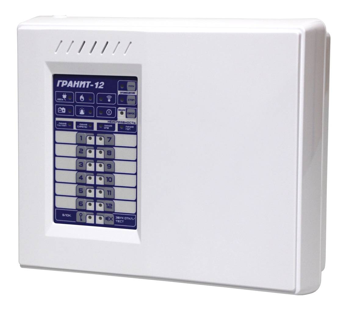 Гранит-12 прибор приемно-контрольный охранно-пожарный; 12 зон, 2 ПЦН, эл. ключ, под аккумулятор 4/7 Ач, гибкое программирование, IP40; -30…+50°С, 250х210х80 мм; 700 г.