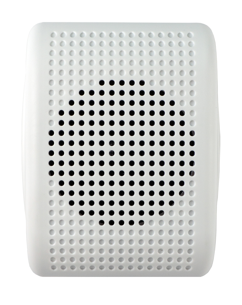 Громкоговоритель имеет компактный вид и выпускается в белом корпусе для настенного монтажа.