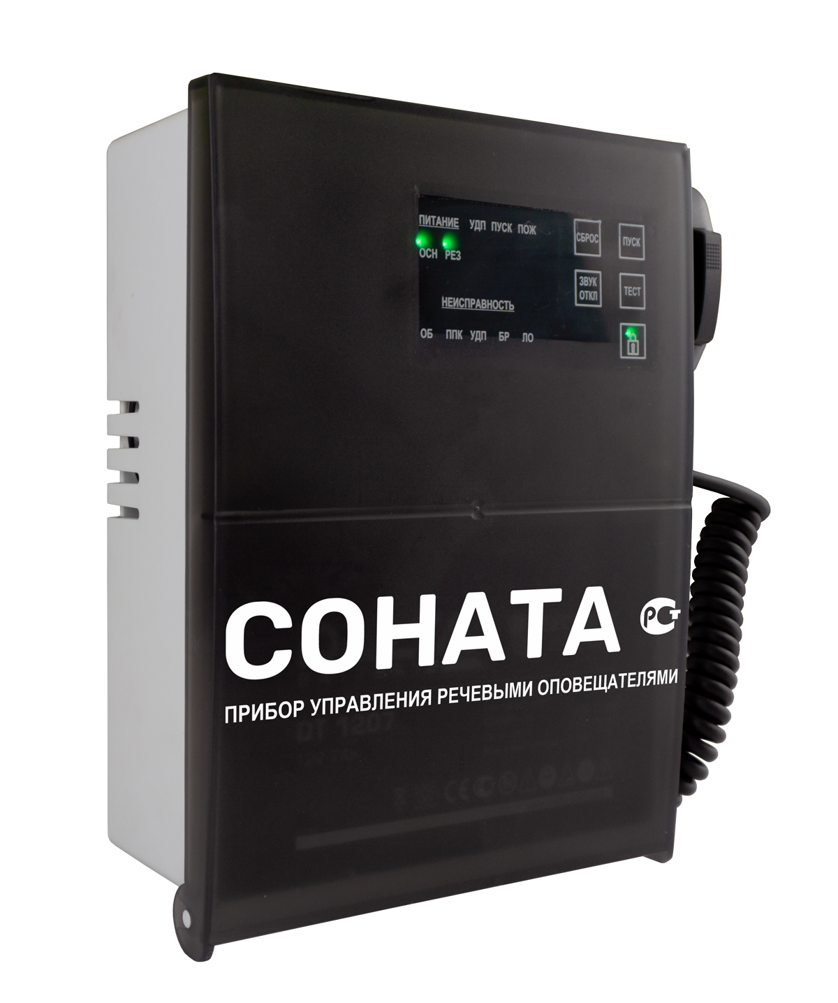 Прибор управления оповещением СОНАТА КЛД предназначен для принятия и обработки сигнала тревоги от прибора приемно-контрольного пожарного и/или от элементов дистанционного управления речевым оповещением и дальнейшей трансляции заранее записанных сообщений о пожаре, антитеррористической угрозе и других чрезвычайных ситуациях через громкоговорители типа "СОНАТА Л" внутри зданий, а также передаче речевых объявлений оператором через аварийный микрофон. Осуществляет контроль линий.