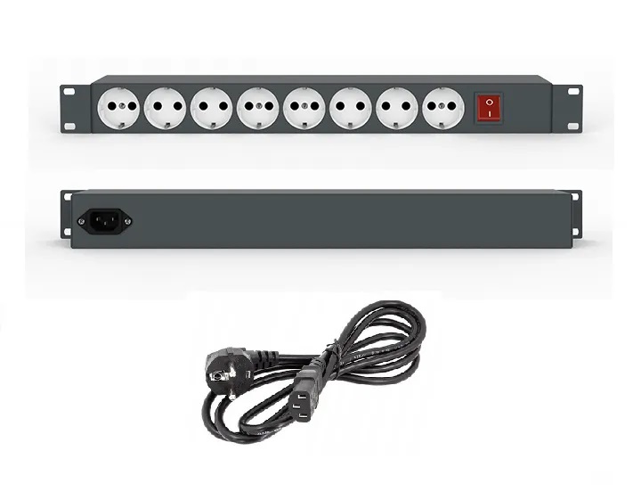 Блок из 8 розеток; 16А; шнур с вилкой SCHUKO; установка в 19" стойку; высота 1U.