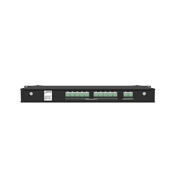 Sonar SAD-1125 распределитель аудио сигнала; 0,775 В / 600 Ом / симметричн.; 1вх / 10вых (моно) или 2вх / 5 вых (стерео); IP 20; 483х44х60 мм; 1,2 кг.