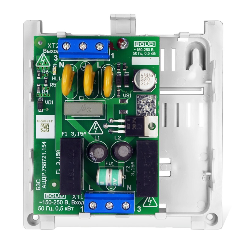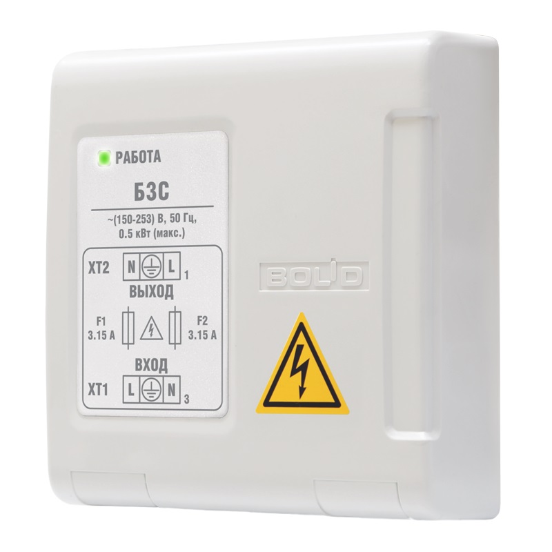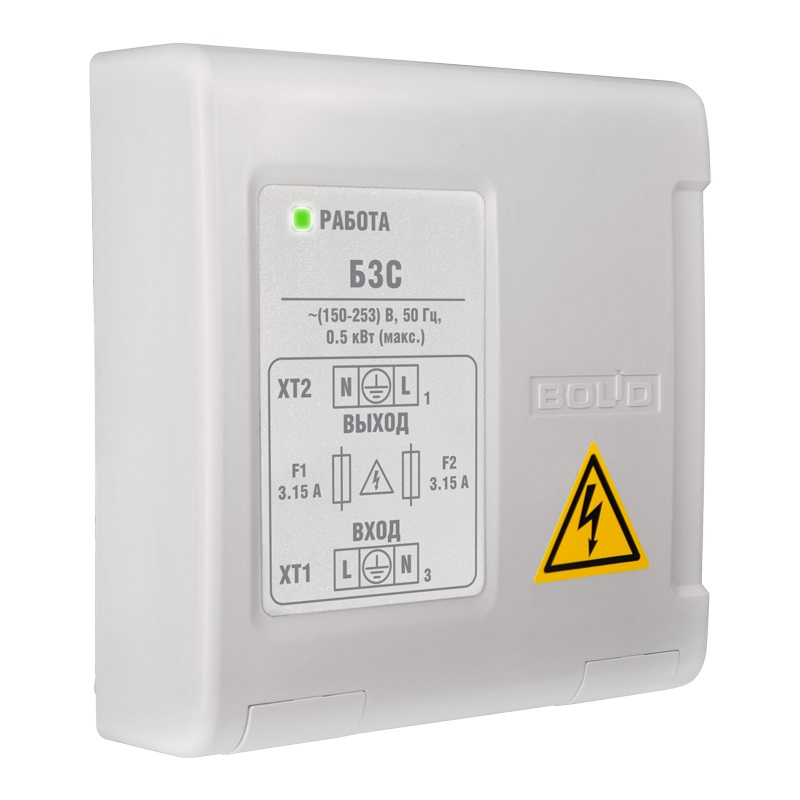 БЗС блок защитный сетевой Болид; для защиты приборов (мощностью до 500 Вт); питающихся от сети 220 В от импульсных помех и длительных перенапряжений; -30 до +50°С; 102*107*39 мм; 0,12 кг.