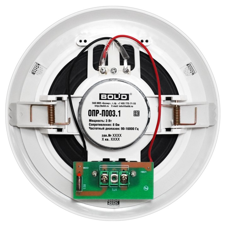 ОПР-П003.1 оповещатель пожарный речевой потолочный Болид; P-ном.3 Вт; SPL 89 дБ; 8 Ом; f-раб.90…16000Гц; IP41; t-раб.-10...+55°С; 185х58 мм; 0,34 кг.