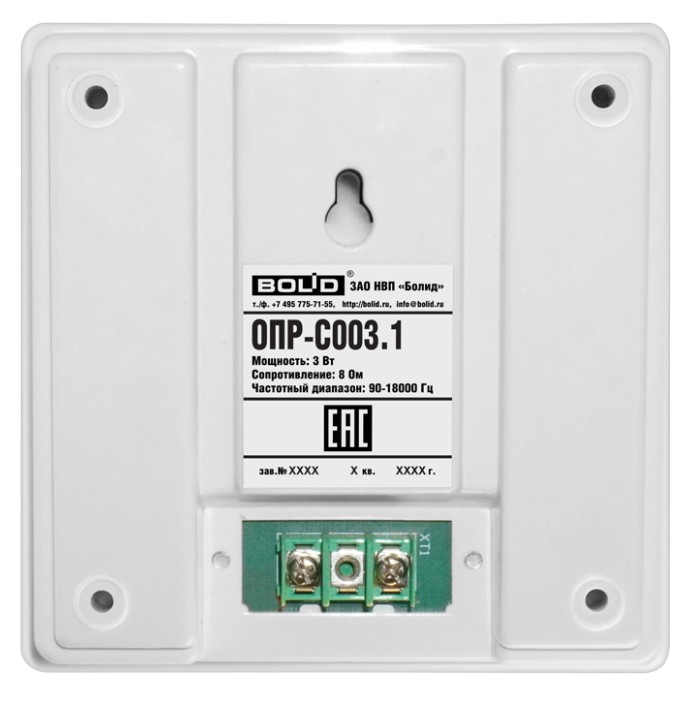 ОПР-С003.1 оповещатель пожарный речевой настенный Болид; пластик; 121x121x61 мм; 0,27 кг.