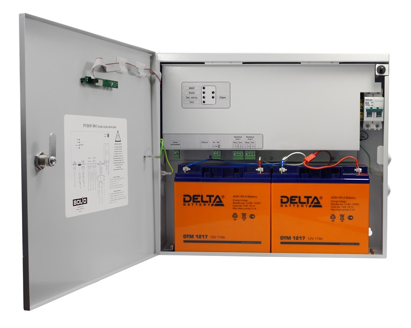 Резервный источник питания: 2 аккумуляторные батареи 12 В, 17 А•ч