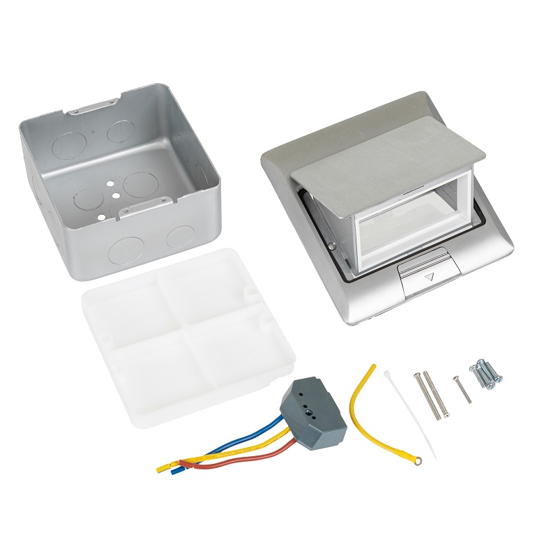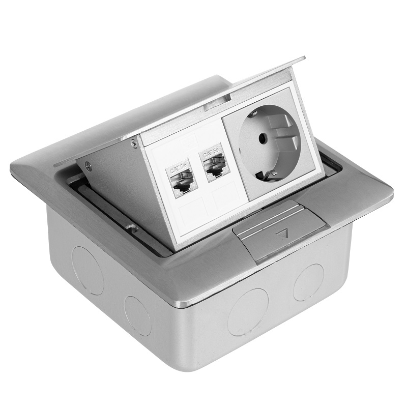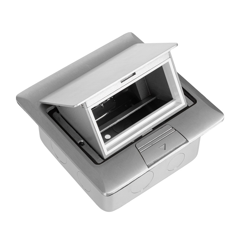 DR-PRO-013822 лючок напольный, 4 модуля, выдвижной, алюминий, в бетон, серебрянный Datarex; IP40; алюминиевый сплав; глубина монтажа 65-90 мм; 146х146х8/120х120х60 мм.