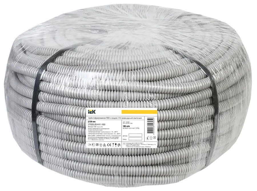 CTG20-20-K41-050I труба гофрированная ПВХ d=20 мм с зондом (50 м/бухта) IEK; цв.серый; IP40; -15...+60°C; наруж диаметр: 20 мм.