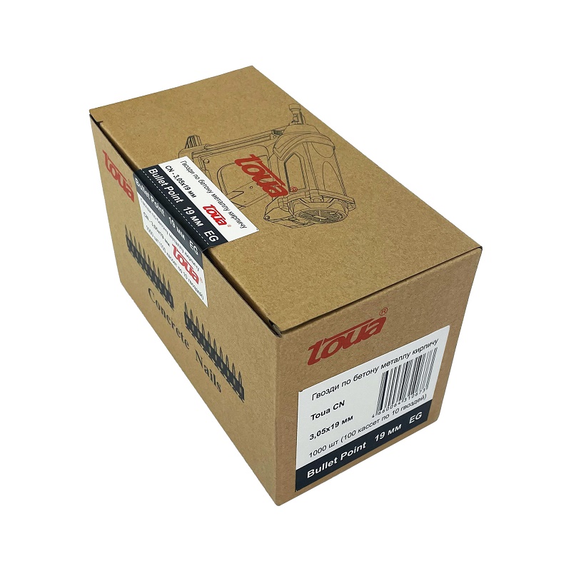 Гвоздь газовый 3.05x19 CN EG Bullet Point Toua; длина 19 мм; сечение/диаметр 3.05 мм; сталь; по бетону; фасовка 1000 шт.