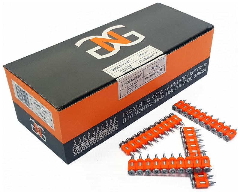 Универсальные дюбель-гвозди GNGC6 для работ по бетону металлу и кирпичу с баллистическим острием. Совместимы с инструментами GNG, FAST, TOUA, LIXIE, SPIT.