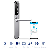 Home Plus SILVER (ver.4239) Novilock электронный замок; считыватель отпечатка пальцев; RFID карта; Mifare; 13,56 МГц; Bluetooth; врезной механизм:4085/4585/4592/5085/5572/6072/6085; монтаж накладной; IP55; DC 6В; -35°...+55°С.