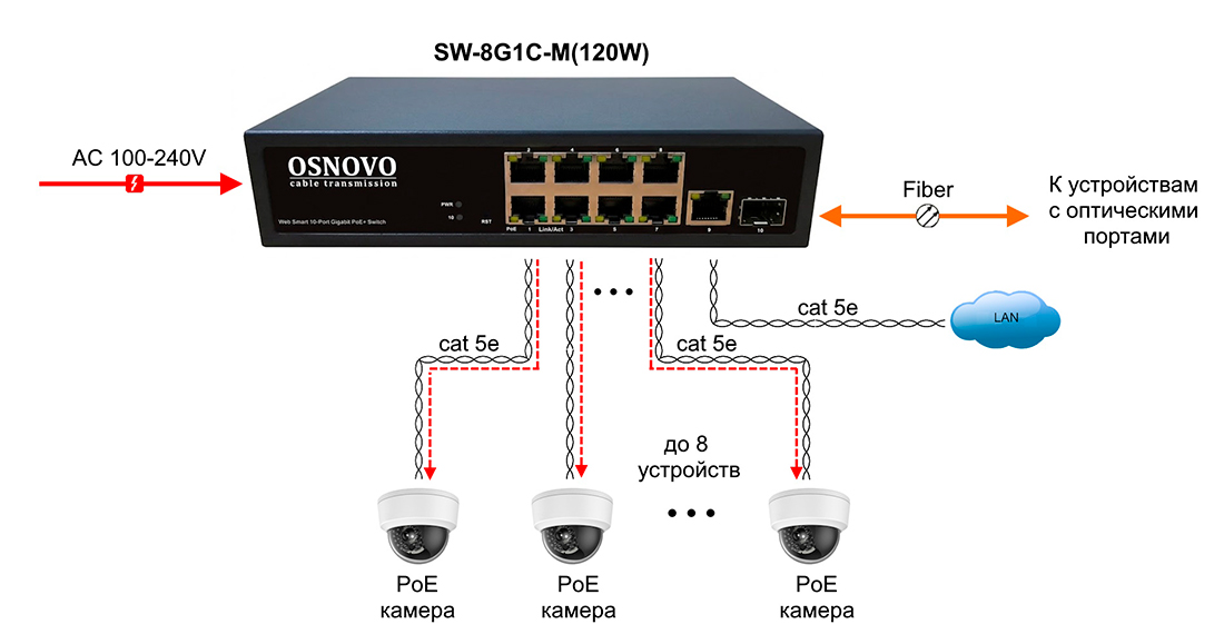 SW-8G1C-M(120W) идеально подойдет для небольших объектов, где требуется компактное, бесшумное устройство с возможностью подключения до 8 устройств. Это баланс цены и функциональности для базовых задач видеонаблюдения.